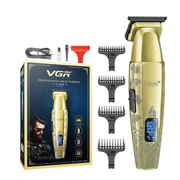 Тример VGR V-265 — професійний і надійний інструмент для стрижки волосся та оформлення бороди. Металевий корпус забезпечує комфортне та довговічне використання, гостре DLC- і титан-покриття леза гарантує ідеальний зріз, а LED-дисплей дає змогу легко контролювати заряд акумулятора. Потужний мотор із турбо-режимом дозволяє обробляти густе волосся швидко й ефективно.