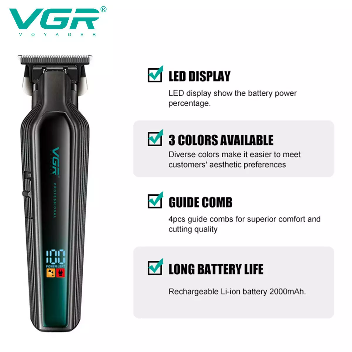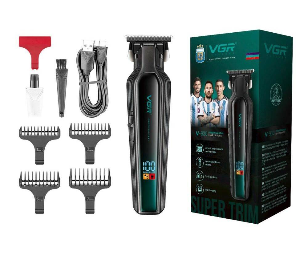 Тример VGR V-930 — професійний бездротовий інструмент для підстригання волосся та догляду за бородою. Надійний корпус, високоточне Т-лезо, LED-дисплей із градієнтною індикацією заряду та турбо-режим створюють зручну та ефективну експлуатацію. Можливість заряджання через USB-Type-C з одночасною роботою робить його максимально гнучким у застосуванні.