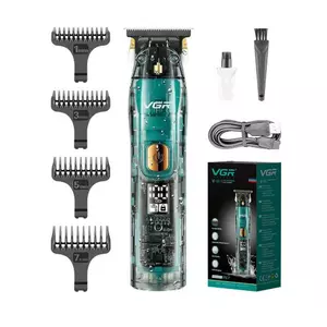 Тример VGR V-961 Professional — професійний бездротовий інструмент для догляду за волоссям, бородою та вусами, розроблений, щоб утримувати ідеальні контури з максимальною точністю. Завдяки міцному лезу зі сталі R-форми, а також режиму «Cord/Cordless», тример зручно використовувати вдома або в дорозі, не турбуючись про заряд — працює автономно до 180 хв або під час підключення. Рівень заряду наочний завдяки LED-дисплею: зелений індикатор — для повного заряду або роботи, червоний — вказує на заряджання. А водозахист IPX7 дозволяє легко промивати корпус тримера після використання, забезпечуючи гігієнічність і зручність обслуговування. USB-зарядка гарантує швидкий та зручний спосіб поповнити батарею будь-де, навіть за допомогою павербанка.