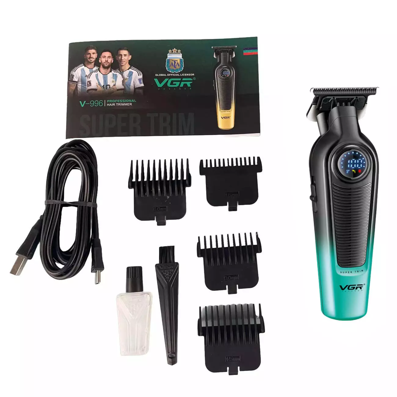 Тример VGR V-996 — надійний і універсальний інструмент для стрижки волосся і бороди, поєднує високу потужність, довговічні леза і просте управління. Потужний мотор із швидкістю до 7000 об/хв забезпечує рівний зріз навіть на густому волоссі. Леза з титановим і керамічним покриттям гострі, стійкі до зносу і самозатачуються. LED-дисплей чітко показує рівень заряду, інформує про стан батареї, а USB-Type-C зарядка робить процес заряджання максимально зручним. Завдяки тривалому часу роботи і можливості використання під час зарядки, тример гарантує безперервну автономність.