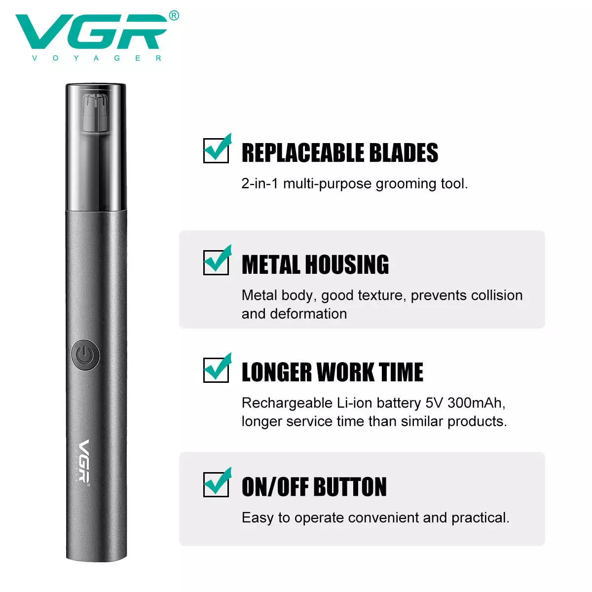 Триммер 2в1 VGR V-615 для носа и ушей с 2 насадками
