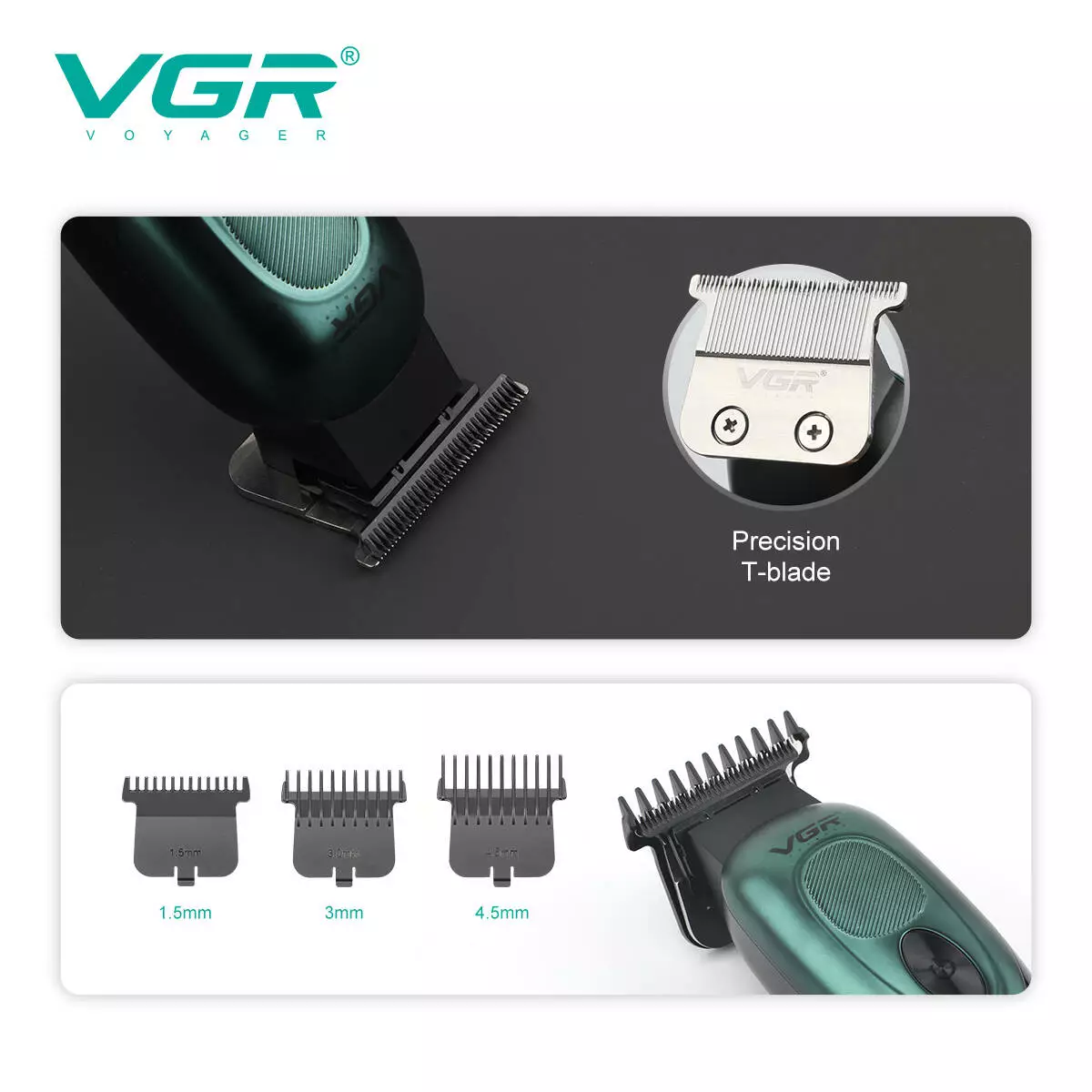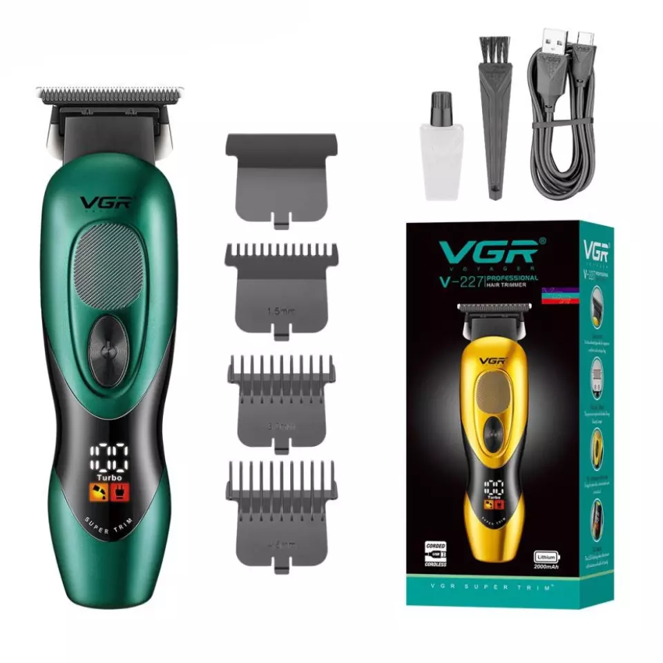 Триммер VGR V-227 с 3 насадками LED (Зелёный)