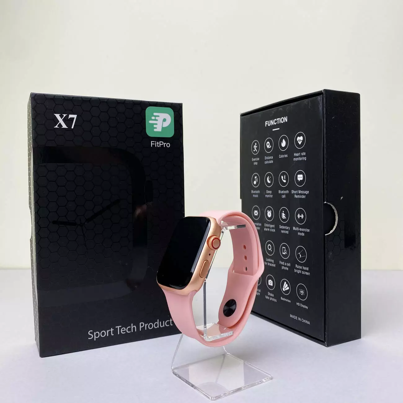 Умные часы Smart Watch X7 - оснащены широким функционалом, хорошим дизайном и качественной синхронизацией между устройствами с помощью Bluetooth. Значительное преимущество умных часов Х7 – поддержка звонков с вашего мобильного устройства – принятие / ответ / отказ. С помощью часов вы можете пользоваться голосовым помощником (Siri, ассистент). Так же гаджет станет вам отличным помощником в контроле здоровья, так как имеет функции шагометра, счетчика калорий, мониторинга сна и другие.