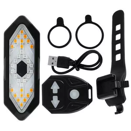 Велоліхтар з поворотами FY-1820 (red+yellow) з акумулятором + пульт управління - є надійним джерелом світла для безпечних поїздок у темний час доби. Оснащений вбудованим акумулятором та зручною системою кріплення, що дозволяє легко встановлювати його на кермо велосипеда. Чотири режими роботи допоможуть вибрати оптимальний рівень освітлення, залежно від умов. Ліхтар заряджається через USB-кабель, який входить до комплекту.